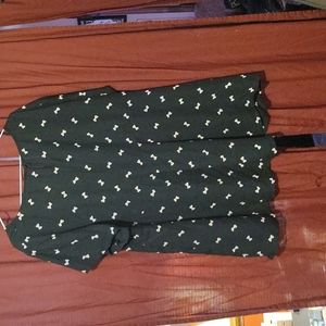 Black Torrid tunic, size 3, has a fun bow print (bows are a light pink)! Short sleeved. Worn only a few times, in good condition! Pit to pit measures approx. 26 inches.