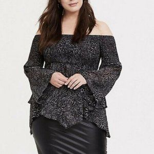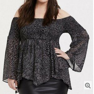 Torrid Tunic Grey Animal Print Chiffon Off Shoulder Top Blouse Plus Size 3X