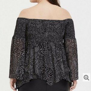 Torrid Tunic Grey Animal Print Chiffon Off Shoulder Top Blouse