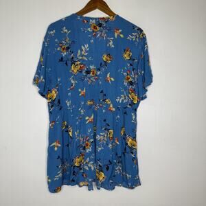Torrid Tunic Top Womens 2X Blue Floral Short Sleeve Crochet Boho Peasant Blouse