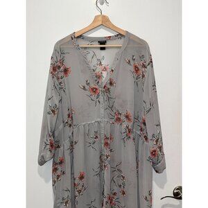 Torrid Tunic Top Womens 4x Floral Sheer High-Low Button-Front