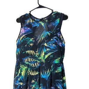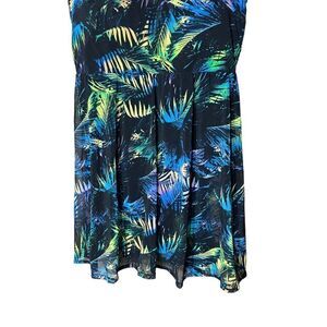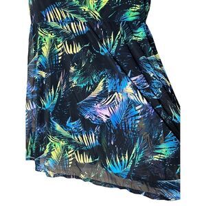 Torrid Underwire Mesh Overlay Swim Dress With Brief Size O D/DD. Lightly lined. Underwire cups. Adjustable straps. Nylon Spandex material. Beautiful printed mesh overlay. Peplum hem. Brief underlay for extra coverage. See size chart. Size O is a size Large. Excellent condition