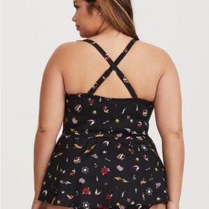 Torrid Underwire Push Up Peplum One Piece Swimsuit Size 1 1X Black Tattoo Dagger