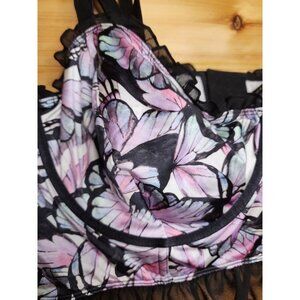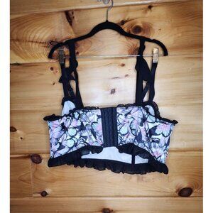 Torrid Underwire Ruffle Bra Bralette size 4 Butterfly Windows Black Tie Strap