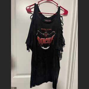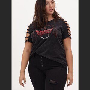 Torrid Universal Monsters Dracula Black Mineral Wash Slashed Crew Top 4/4X NWT