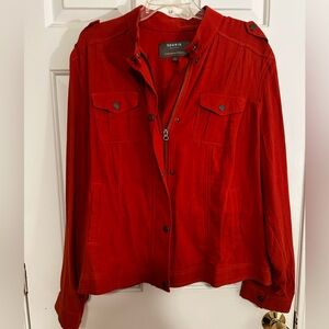 Burnt orange jacket with sleek design. Ideal for everyday wear. Practically brand new. Worn maybe twice.