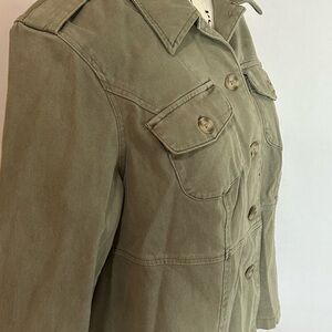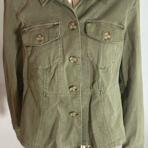 Chic utility jacket with button closure. Features chest pockets and a tailored fit. Med/ Large 10 New with tags!