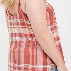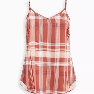 Torrid V Neck Ava Lace Trim Cami Stretch Challis Plaid Red Tank Top Plus Size 4X