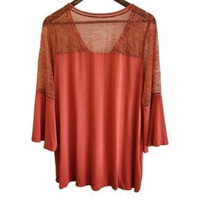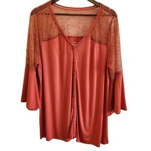 Torrid V Neck Super Soft Lace Inset Button Front Bell Sleeve Top Plus Size 1X