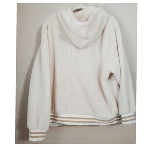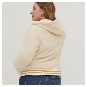 Torrid Varsity Fuax Fur Hooded Bomber Jacket In Cream Size 4