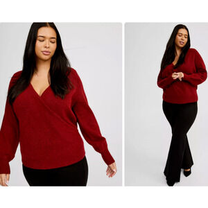 Torrid Vegan Cashmere Pullover Surplice Sweater Size 1 1X Burgundy Red NEW Soft