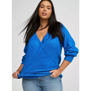 Torrid Vegan Cashmere Surplice Sweater Skydiver Blue V-Neck Size 4X 4 26 NWT