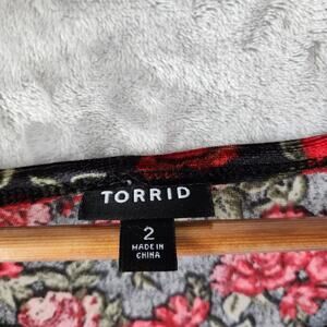Torrid Velvet Dress Womens Size 2X Black Red Rose Print Soft Stretch Fit Flare