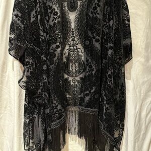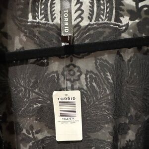 New with tags, velvet fringe burn out Ruana. Torrid. Sold out on site.