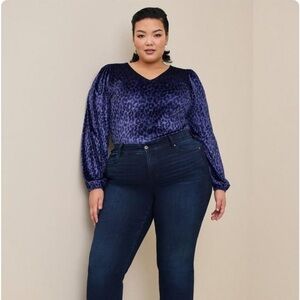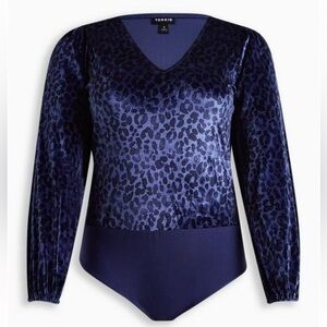 Torrid Velvet V-Neck Long Sleeve Bodysuit Blue Leopard Pattern Size 3 NEW