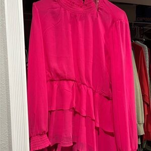 Chic pink blouse with layered design. Perfect for adding color to your outfit.