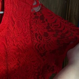 Chic red lace dress with short sleeves. Ideal for events. Not new. Refer to pictures for look.
