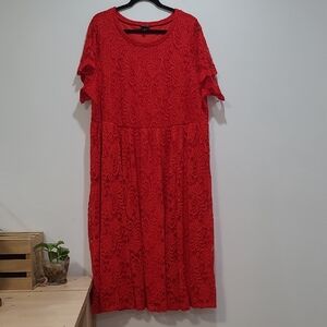 Torrid Vibrant Red Two Side Pocket Midi Lace Dress....Pre-love in excellent condition, color may vary a little because of lighting.