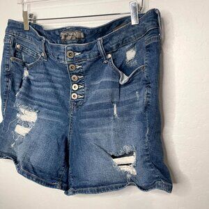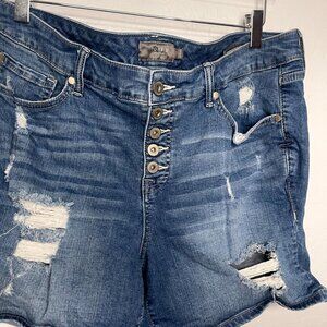 Torrid Vintage Button Fly Mid Rise Distressed Denim Shorts