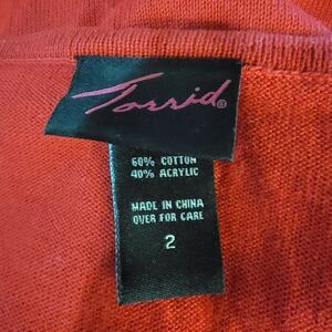 Excellent pre-owned condition. No flaws to note. Women's plus size Torrid Vintage Red Cardigan Sweater Shrug Size 2 2x.