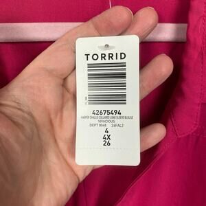 Torrid Vivaceous Pink Harper Challis Collared Long Sleeve Blouse Sz.4 NWT