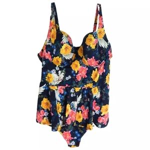 Item: Women's Black Floral Vixen Peplum One Piece Swimsuit Underwire