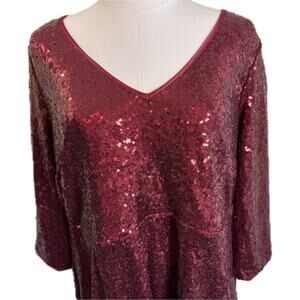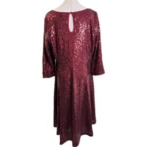 Torrid V-neck 3/4 Sleeve Burgundy Sequin Flared Dress - Size 00 (Medium 8-10)