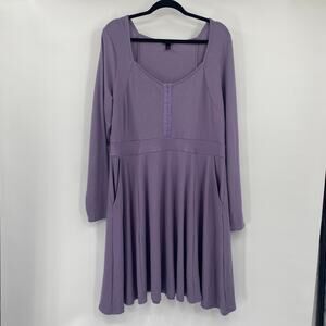 Torrid Waffle Knit Mini Dress Long Sleeve Skater Fit & Flare Scoopneck Purple 2X