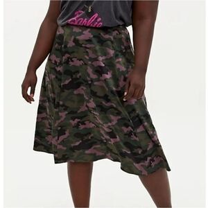 Torrid Waistband Midi Skirt Satin Slip Army Camo Print Size 4 NWT