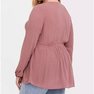 Torrid Walnut Tie Front Babydoll Top Boho Peasant Dusty Pink Women's Sz 0 Large