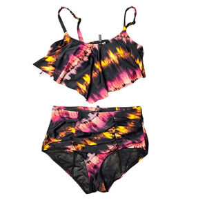 Torrid Wash Striped Dye V Flounce Bikini Size: 0x