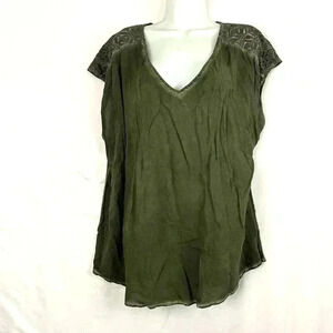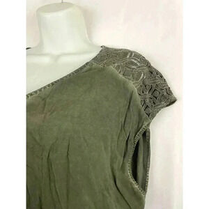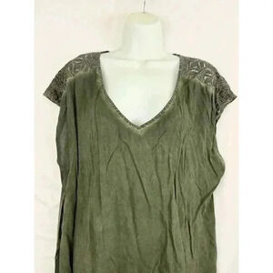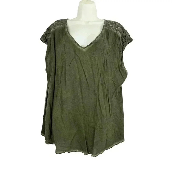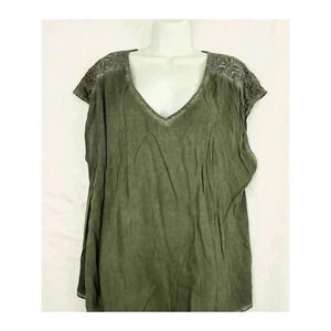NWT Torrid Washed Challis Lace Top Sz 0 Women's Plus Green V Neck