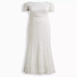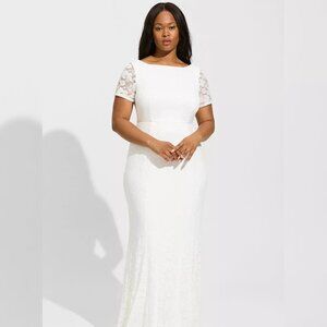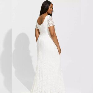 Torrid Wedding Dress Ivory Lace Short Sleeve Fit & Flare Stretchy Train Bride