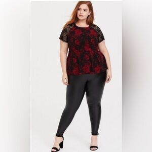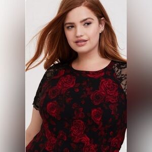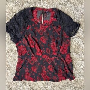Torrid WhimsiGoth Fairy Peplum Black Lace Sleeve Top Red Rose Blouse Size 1 EUC