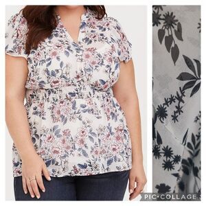 Torrid White / Black CHIFFON RUFFLE FRONT BLOUSE