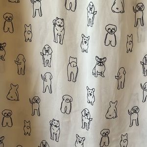 Chic Torrid blouse. White fabric with playful black dog print. Button-up front. Three-quarter sleeves.