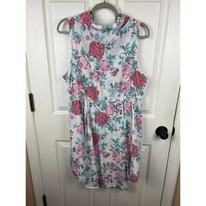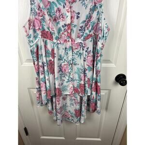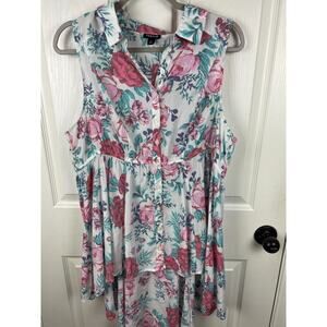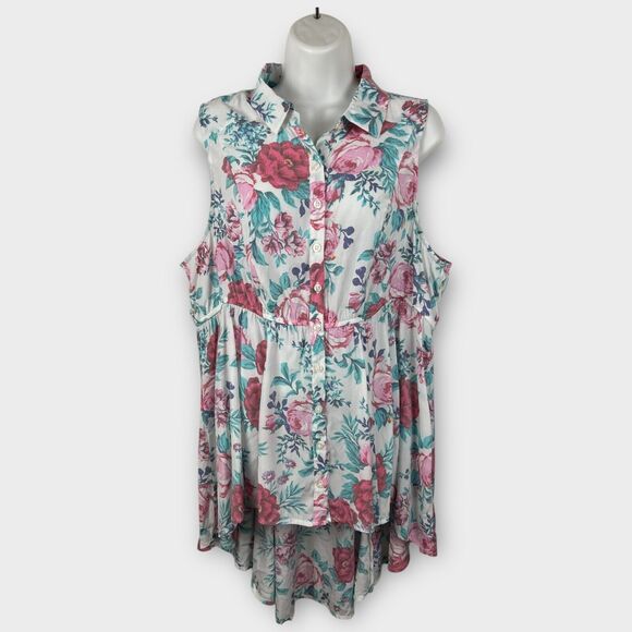 Torrid White Collared Rose Print Tunic Sleeveless Blouse Top 1X Cottagecore