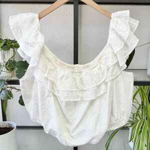 Torrid plus size white embroidered crop top with wide off the shoulder neckline. No Tag, but it's 23" from pit to pit.