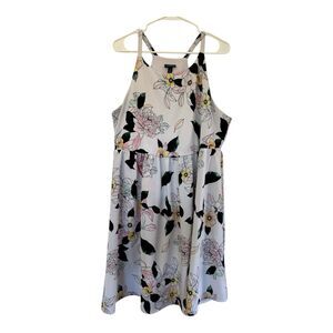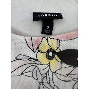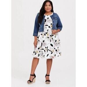 Torrid White Floral Textured Lined Knit High Neck Skater Dress Women's Size 2