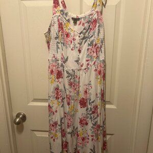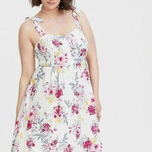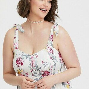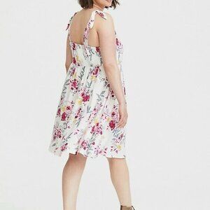 Torrid White Flowy Mini Dress with Pink Floral Print Tie Straps