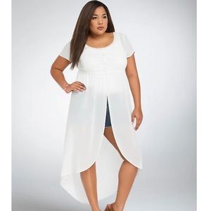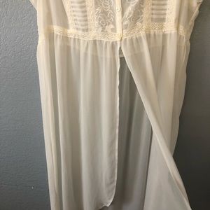 Elegant white high-low top. Short sleeves. Flowy and stylish.