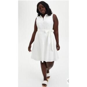 Torrid White Poplin Self-Tie Pintuck Shirt Dress Size 0
