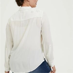 Torrid White / Silver Crinkle Gauze Star Button Front Blouse