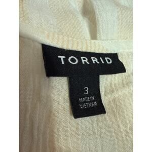 Torrid White Striped Short Sleeve Crochet Lace-Up Crinkle Gauze Peplum Blouse Top Size 3