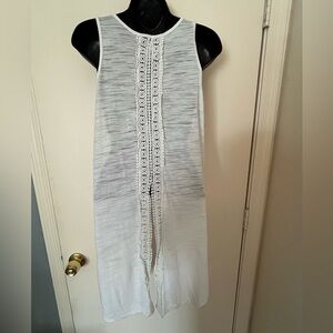 Elegant white sleeveless top with lace detailing. Perfect for a casual day out or a relaxed evening. Soft and comfortable fabric.