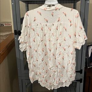 Charming white top featuring pink flamingo design. Perfect for casual outings.