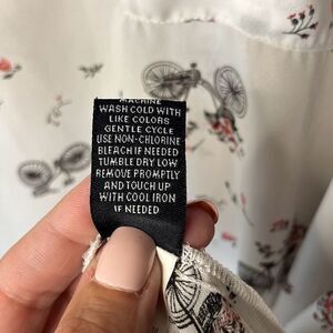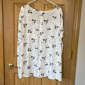 This cute top is made by Torrid. It’s a white short sleeve blouse with a bicycle print and little buttons down the back. Torrid size 5 (us size 5X) and in excellent pre owned condition. Smoke and pet free home.