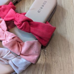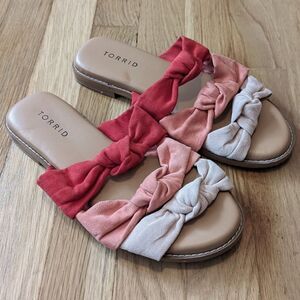 Torrid Wide Knotted slip on sandals flip flops pink and red