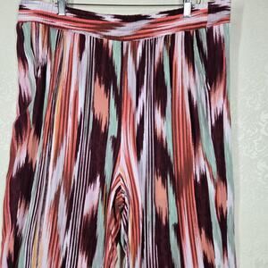 Torrid Wide Leg Crinkle Gauze High Rise Pull On Pants sz 2 (2X) Multi Ikat Stripe. Lined to upper thigh. Elastic waist. Long Inseam.