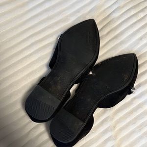 Like new women’s Torrid black suede like material slip in shoes with silver accents. Size 8 wide width. I have worn these one time, they can be dressed up or down! Great addition to any wardrobe 🥰